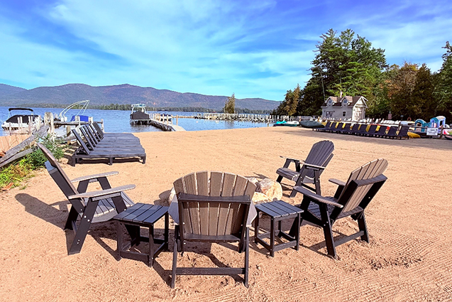 Waters Edge Lodge (formerly Golden Sands Resort) boasts large private sandy beach and shallow sandy bottom swim area offer 15 mile lake, mountain & island views. Never crowded, we’re quiet, peaceful and relaxing! Enjoy an evening lakeside campfire on our private beach.